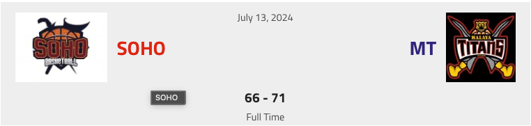Puchong: Perjumpaan antara pasukan SOHO v Malaya Titans (MT) pada hujung minggu yang lalu menamatkan rekod tanpa kalah SOHO apabila tewas 66-71 di dalam division 2.